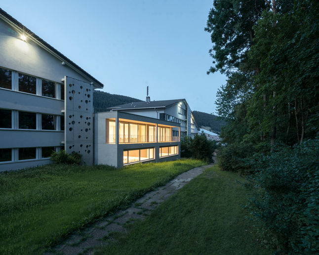 De loin, la façade laisse croire à une usine. Rien d’étonnant à cela, puisque la piscine est sortie de terre simultanément à une usine de traitement des eaux pour la Compagnie générale des Eaux. Les deux édifices sont issus d’une opération de construction commune et sont signés de la main du même architecte, Charles Auray. La piscine municipale bénéficiait de la proximité de l’usine de pompage qui captait des eaux tièdes en profondeur.
